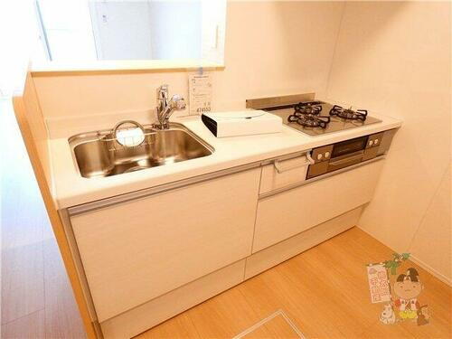 | キッチン | ガスコンロ可、システムキッチン、カウンターキッチン、3口以上コンロ |