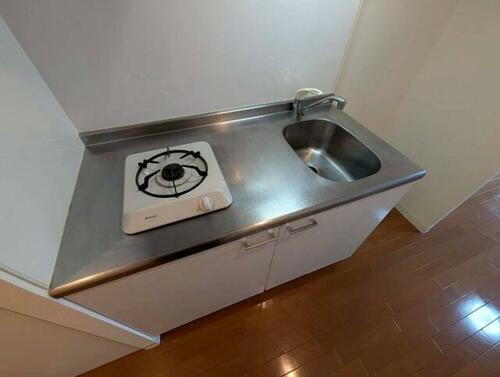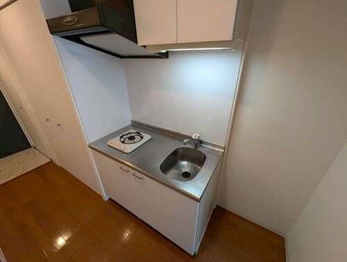シンプルなキッチンです。一人暮らしにはちょうどいいサイズ。