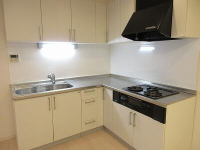 L字キッチン 3口コンログリル付き