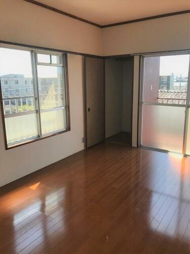 フローリングのお部屋には、東と南に窓。明るいお部屋です!