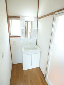 洗面所の眺めになります。洗面台は新品交換済みとなっております。