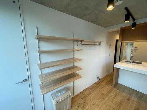 備え付けてある可動式の大きな収納棚が魅力的
