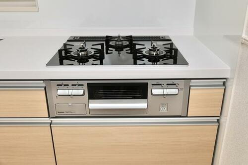 | キッチン | システムキッチン、カウンターキッチン、3口以上コンロ |