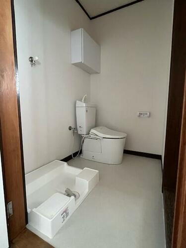 温水洗浄便座を新規取付/手前は洗濯機置き場