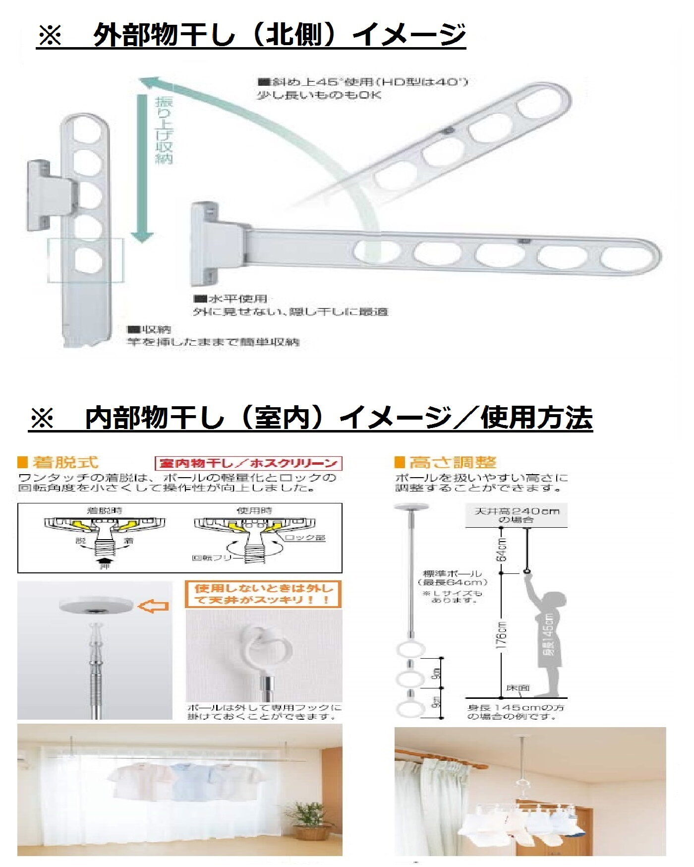 室内と室外に物干し(2ヶ所)女性も安心です!