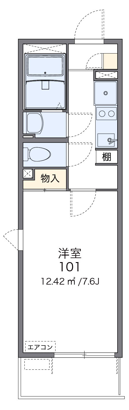 | 室内設備 | 冷房、暖房、エアコン、洗濯機置場、洗面所、冷蔵庫、フローリング、照明器具、衣類乾燥機、家具付き、室内洗濯機置き場 |