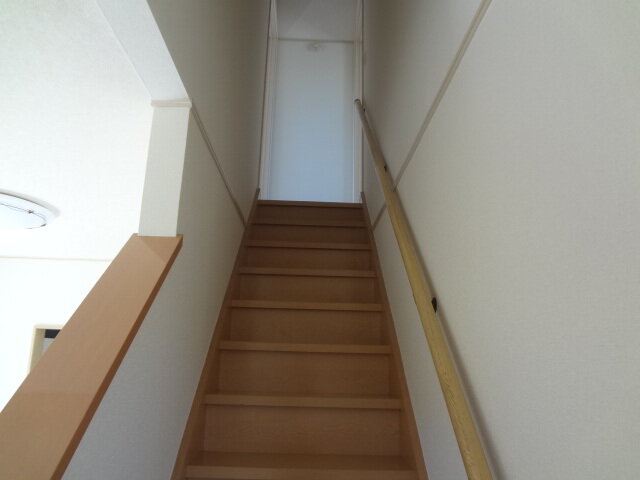 2階への階段には手すりつき