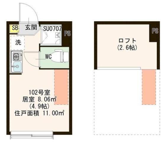 | 室内設備 | 冷房、暖房、エアコン、ロフト、洗濯機置場、室内洗濯機置き場 |