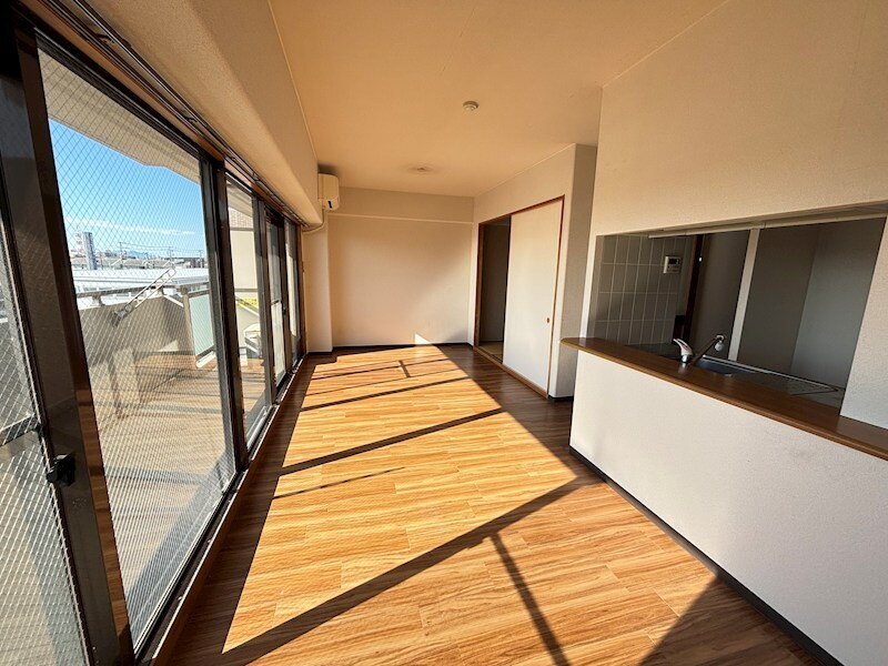 大きな窓が開放感のあるリビングはキッチン含め14帖!