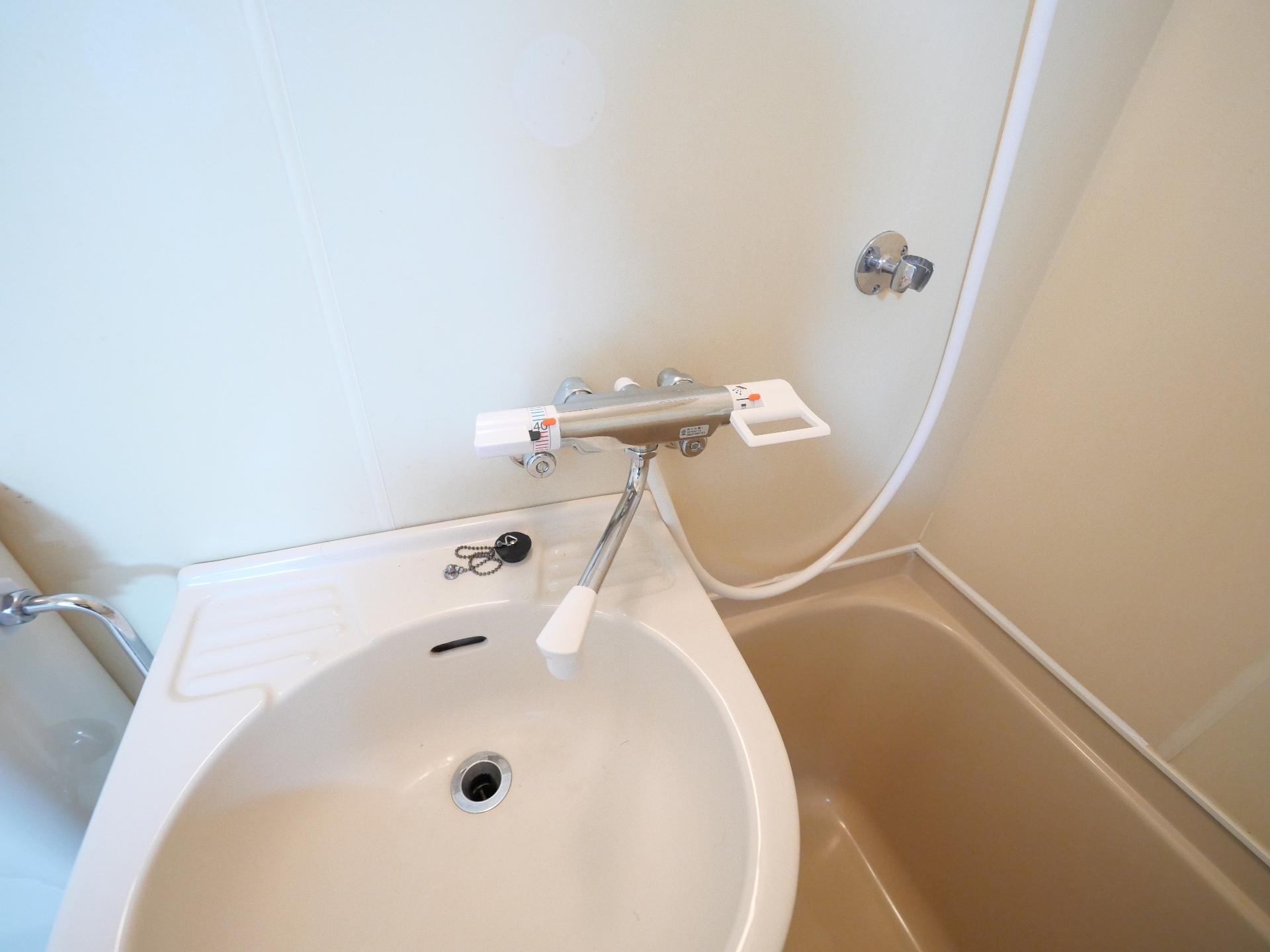 温度調整ワンタッチ、水栓新品交換済み