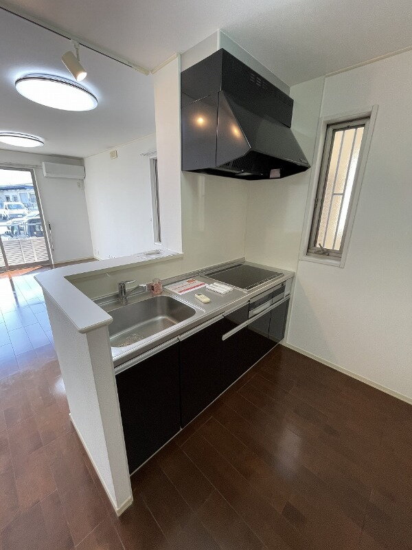 お問い合わせは不動産本舗まで 人気の対面式キッチン☆オール電化物件☆駐車場2台込み☆雨の日でも洗濯物が干せる室内物干しがついてます☆
