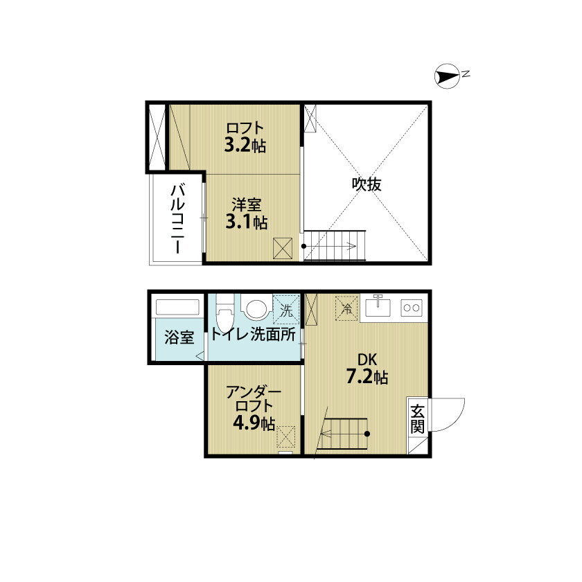 DK7.2帖 床下4.9帖 洋室3.1帖 ロフト3.2帖