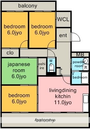 サンハウスレインボー 一社駅 4LDK 賃貸(賃貸マンション・アパート)