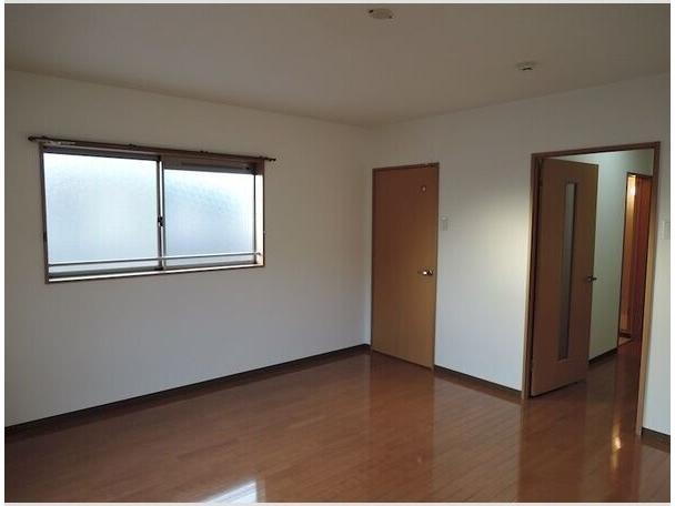 ウォークインクローゼット付き。 1フロア2住戸で全戸角部屋!2面採光で通風も良好♪居室は広めの10.4帖フローリングにウォークインクローゼットも付いて室内は広々すっきり!礼金&更新料なし!