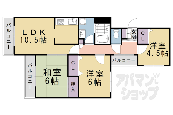 ヴェルデ三番館 上桂駅 3LDK 賃貸(賃貸マンション・アパート)