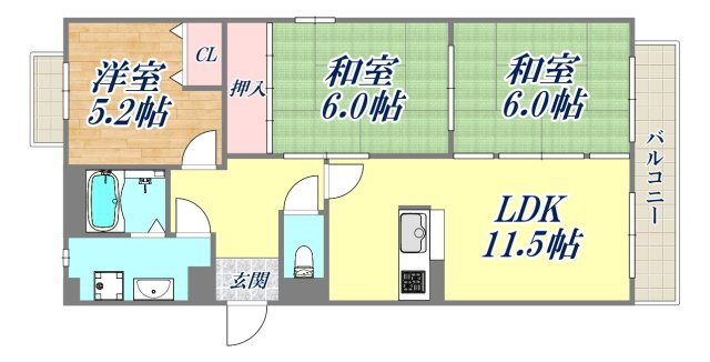 メゾンドーレ野間南 武庫之荘駅 3LDK 賃貸(賃貸マンション・アパート)