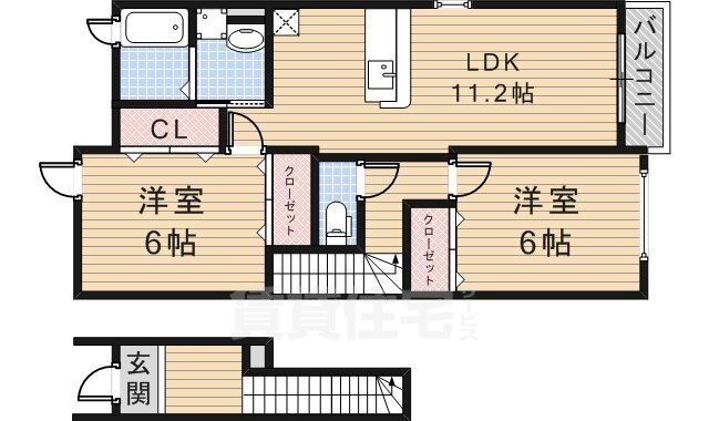 二人入居可・メゾネット・振分・最上階・閑静な住宅街
