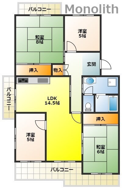 | 建物設備 | バルコニー、都市ガス、2面バルコニー |