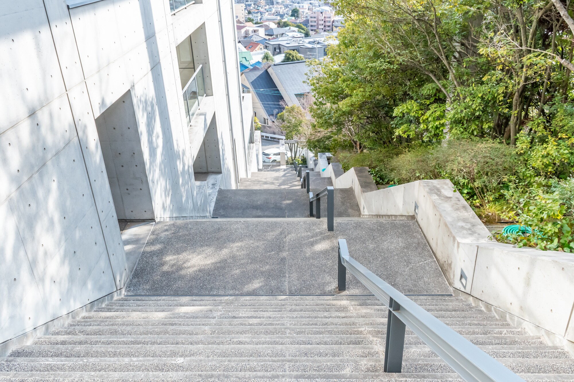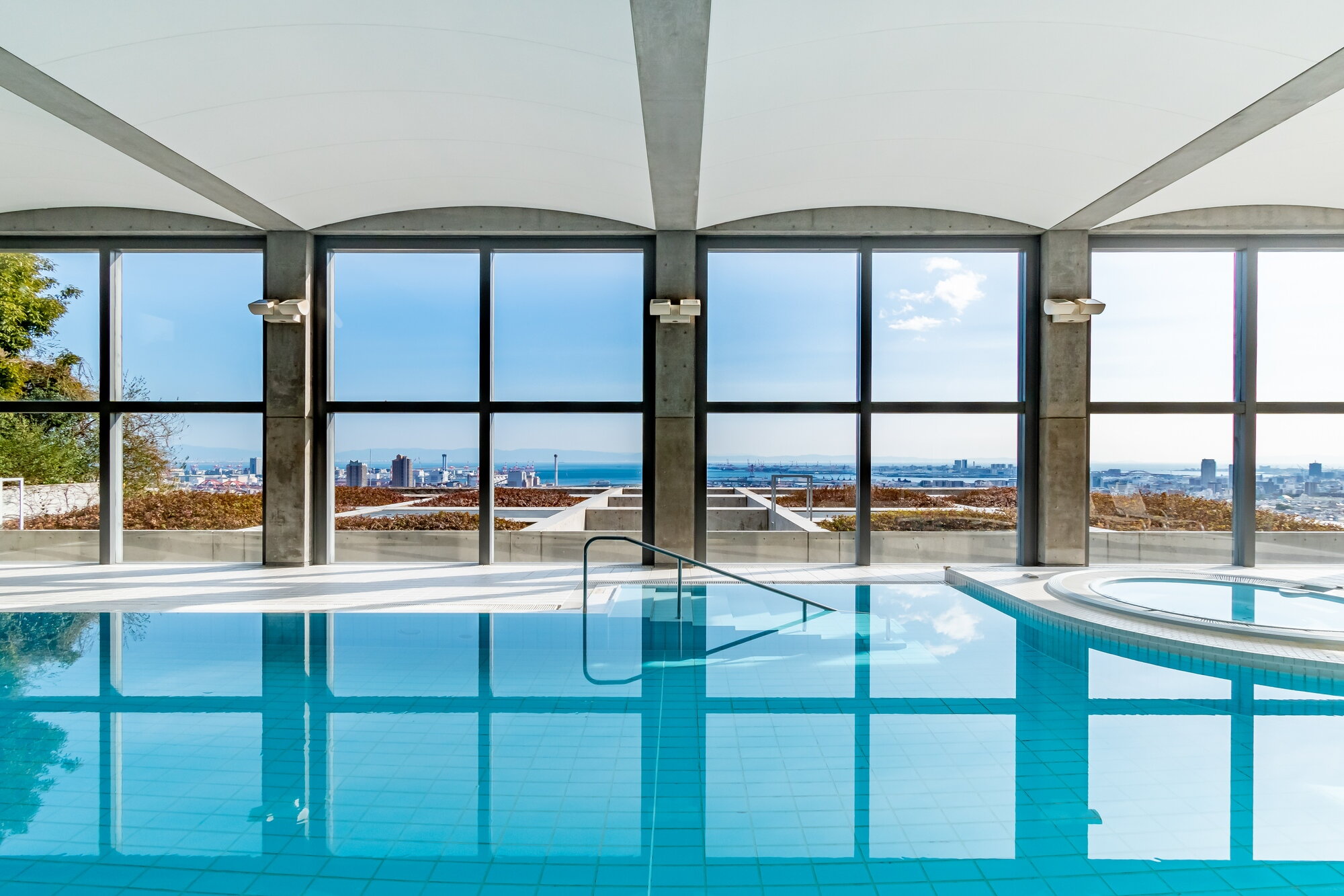 安藤忠雄氏の設計による「六甲の集合住宅」として知られる物件! 緑に囲まれた六甲山麓の斜面に建ち、窓からの大阪湾の眺めはまるで絵ハガキのような大パノラマです。建物内にある入居者専用のスポーツジム・プールは毎日の暮らしに潤いを与えてくれます。