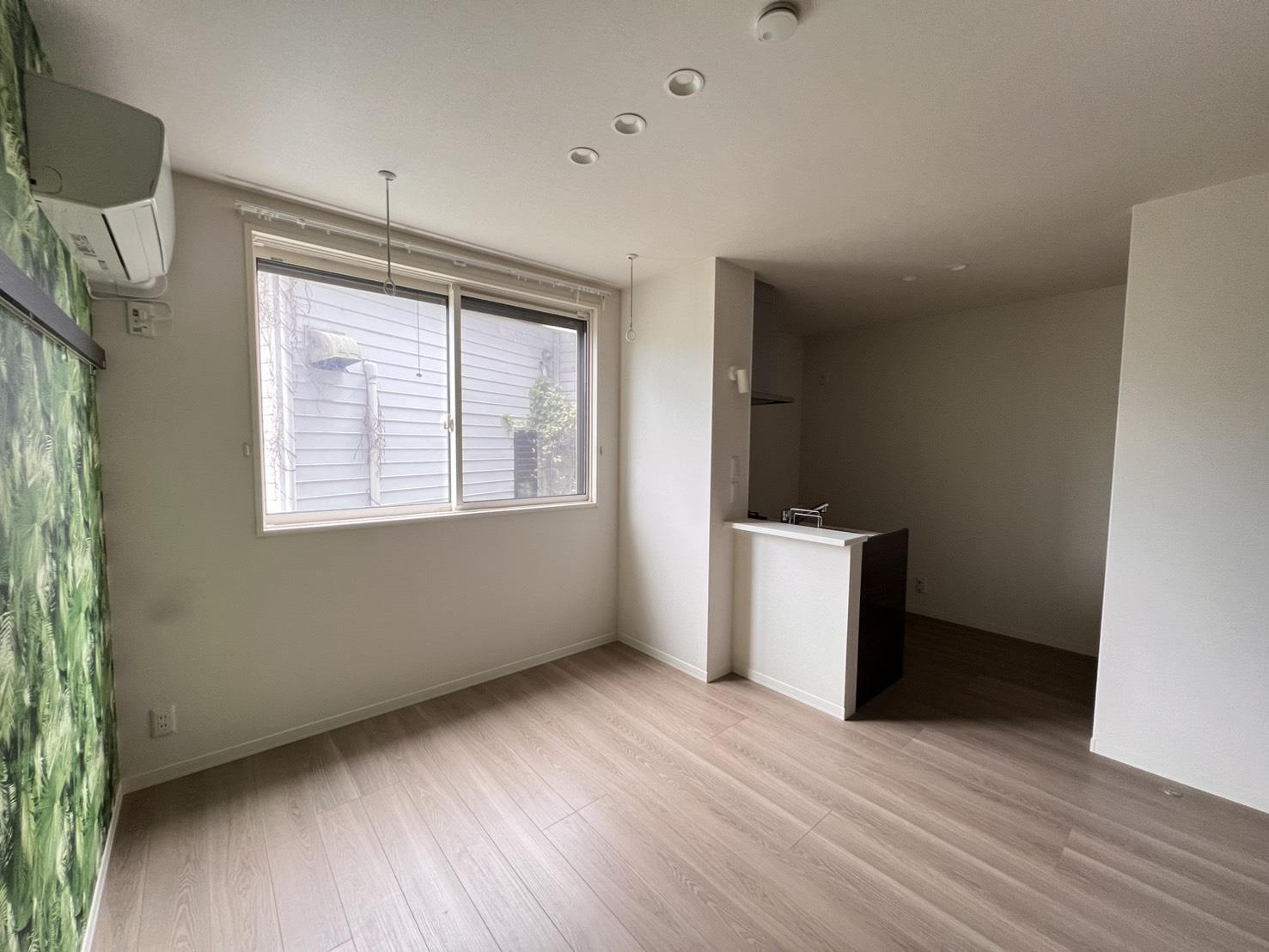 駅より徒歩20分、デザイナーの手がけた雰囲気ある新築物件! 無料Wi-Fi・浴室乾燥・照明器具・温水洗浄便座・モニタ付インターホン・ガスコンロ付。病院まで徒歩約1分、コンビニまで徒歩約3分。ワークデスク兼化粧台はダイニングテーブルとしても使用可能です。