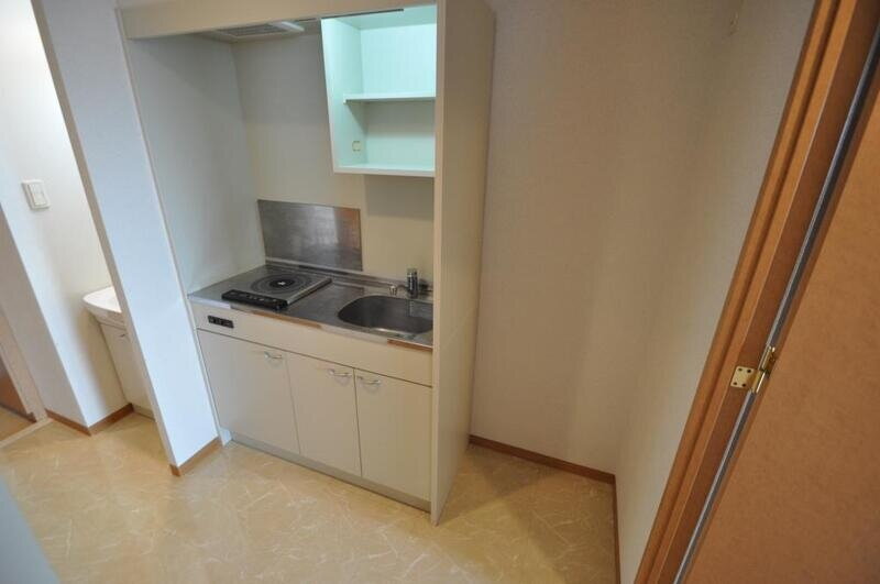 1人暮らしにはぴったりのミニキッチン、お掃除も楽々