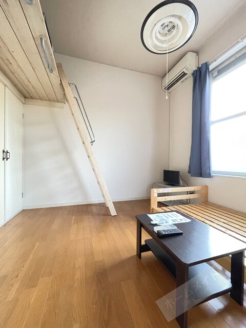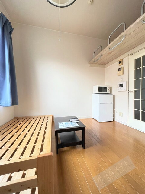 | 室内設備 | 冷房、暖房、エアコン、ロフト、洗濯機置場、冷蔵庫、フローリング、照明器具、ベッド、家具付き、室内洗濯機置き場 |