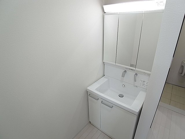 シャワー付き3面鏡の独立洗面台