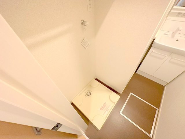 嬉しい室内洗濯機置場。これで洗濯機も長持ちしますね。