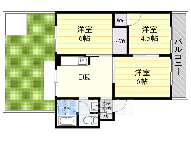 | 建物設備 | バルコニー、都市ガス、宅配BOX、専用庭、2面バルコニー、両面バルコニー |