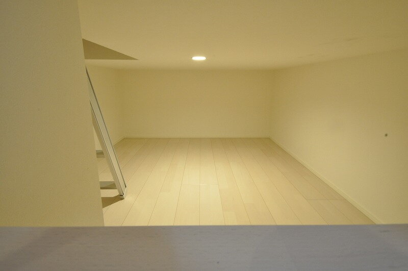 白を基調とした明るい居住空間。天井高もあり開放的な空間です!