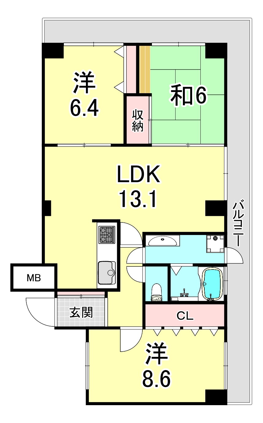 | 建物設備 | バルコニー、エレベーター、都市ガス、2面バルコニー |