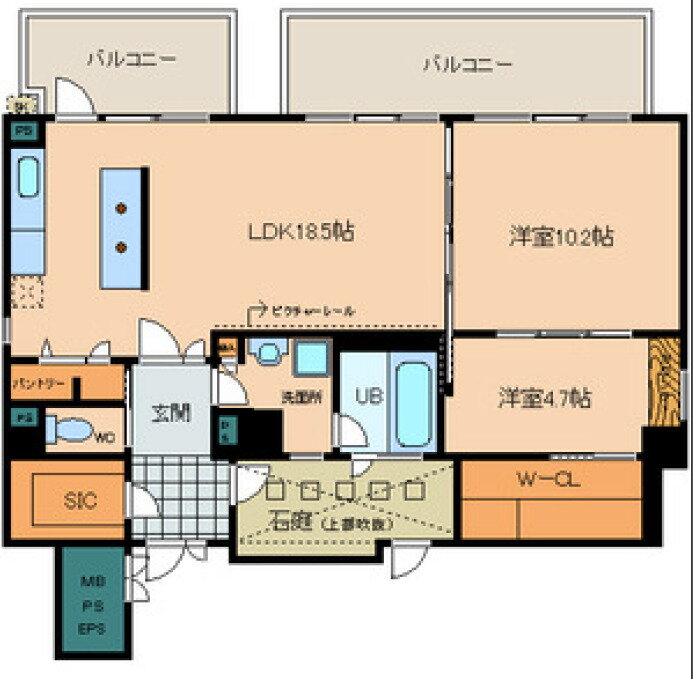| 建物設備 | バルコニー、エレベーター、都市ガス、宅配BOX、2面バルコニー |