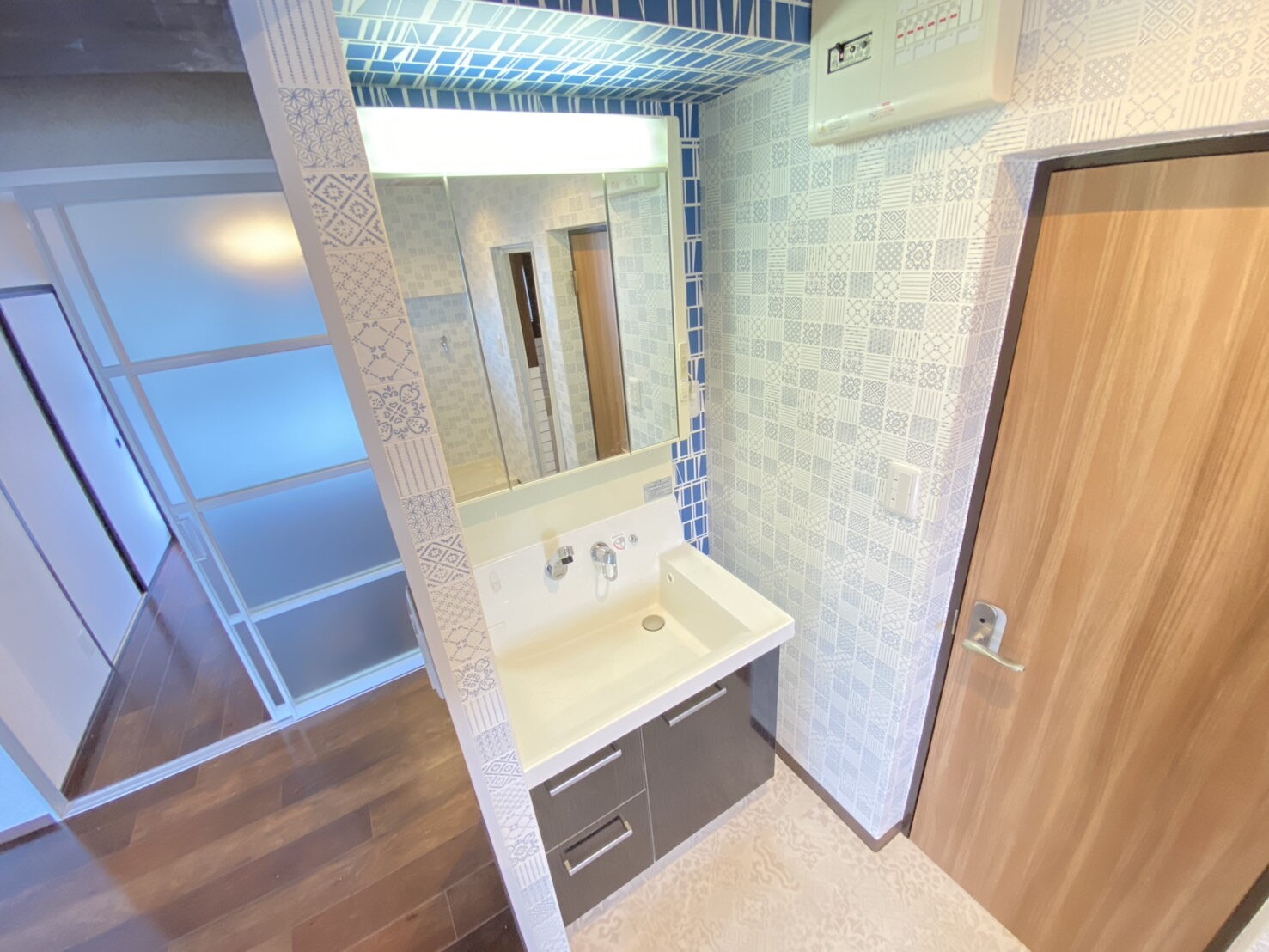 洗濯機置き場です。壁のデザインがお洒落