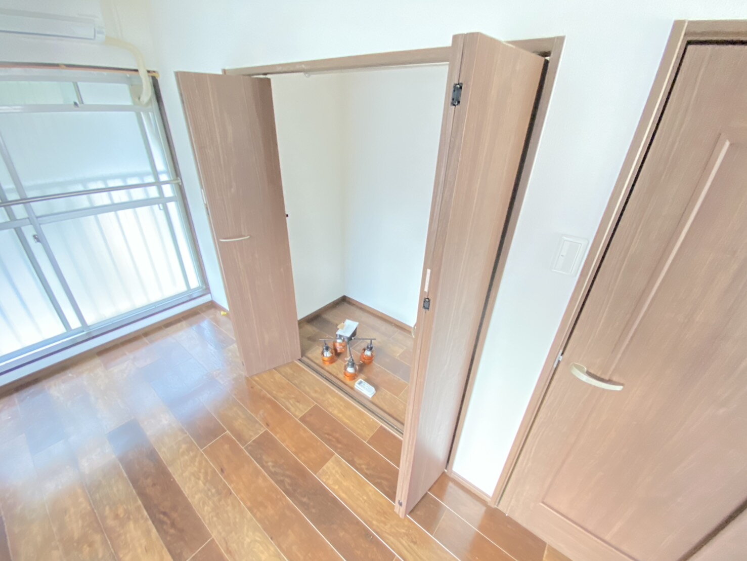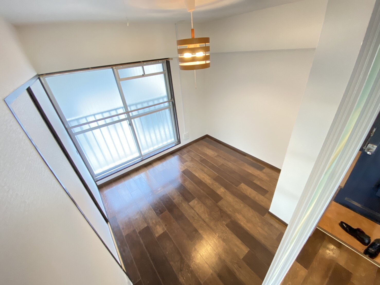 玄関入って右側の洋室です。映り込んだ靴はお見逃しください