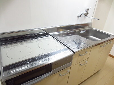 2口IHクッキングヒーター付、シンク・調理台が広く使いやすい