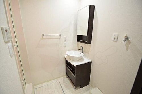 独立洗面台付なので身支度もしやすいです。新築なので、耐用年数が長く安心ですね。