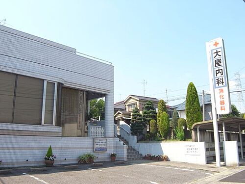 病院「大屋内科まで1100m」