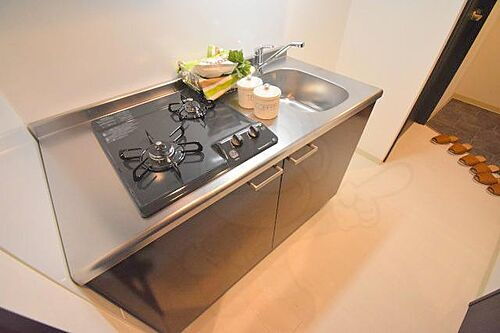 毎日お料理される方にオススメのお部屋です。キッチンは2口のガスコンロ付きのシステムキッチンです。
