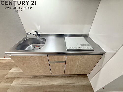 IHコンロ付きのシンプルなキッチン