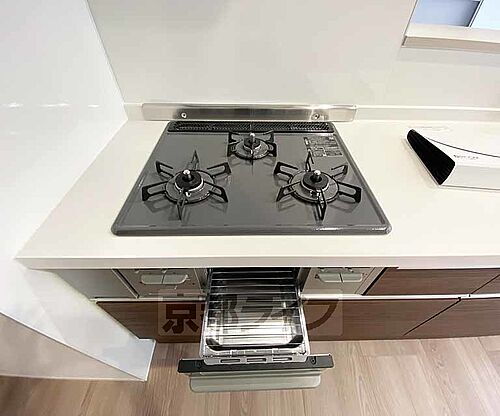 3口ガスコンロ付きのキッチン