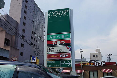 みやぎ生協まで徒歩6分。ドラッグストアも近隣にあり。