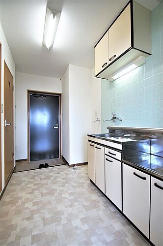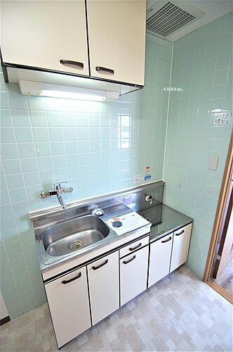 2口ガスコンロ設置可能です。収納も充実しております。