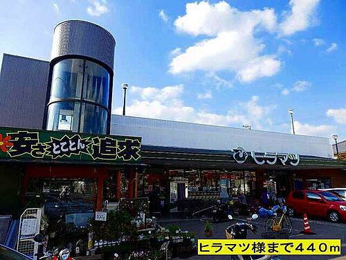 スーパー「ヒラマツ様まで440m」