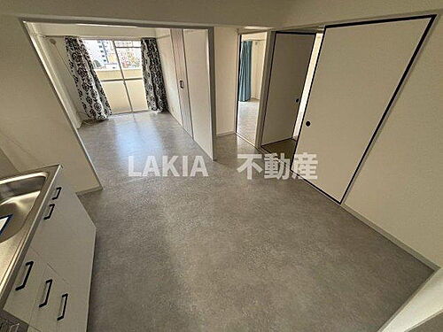 天王寺区、三口ガスシステムキッチンの2LDKタイプ。バルコニー広々