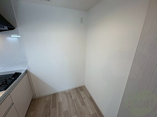 こちらに冷蔵庫を置けます。調理時の動線もばっちり効率的。