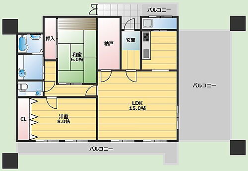 | 建物設備 | 給湯、バルコニー、エレベーター、都市ガス |