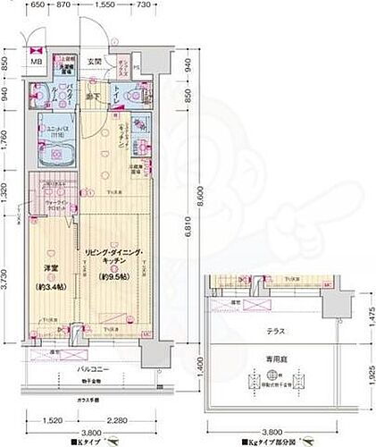 賃料9.5万円 / 管理費等8400円