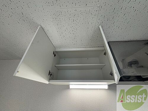 キッチン上部の棚に台所用品や食器などを入れることができます。