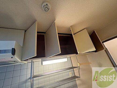 キッチン上部の棚に台所用品や食器などを入れることができます。