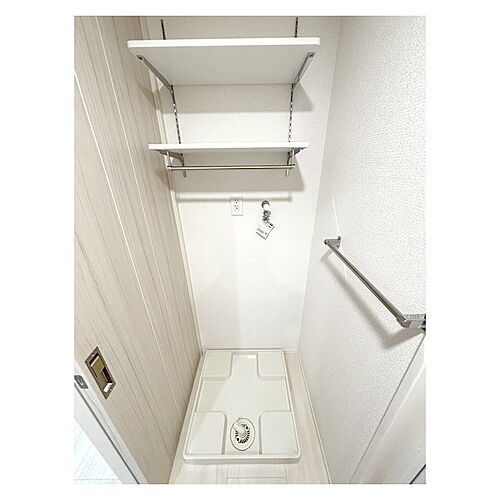 洗濯機置場上部には便利な収納棚付き
